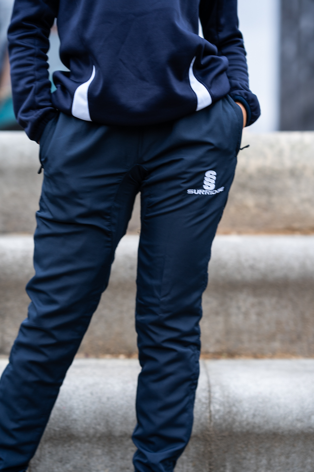 The Blade Ripstop Pants are made with a matte texture Ripstop-Polyester blend, with mesh upper lining and Nylon Tafeta lower lining. The Lycra gusset adds flexibility, comfort and extra strength. It comes with an inner waist draw cord, zipped pockets and a 12" side seam lower zip at hem. They are designed for a modern slimmer leg fit from knee downwards, with a slightly tapered leg. To finish, an embroidered SS Surridge logo is located on the left thigh.